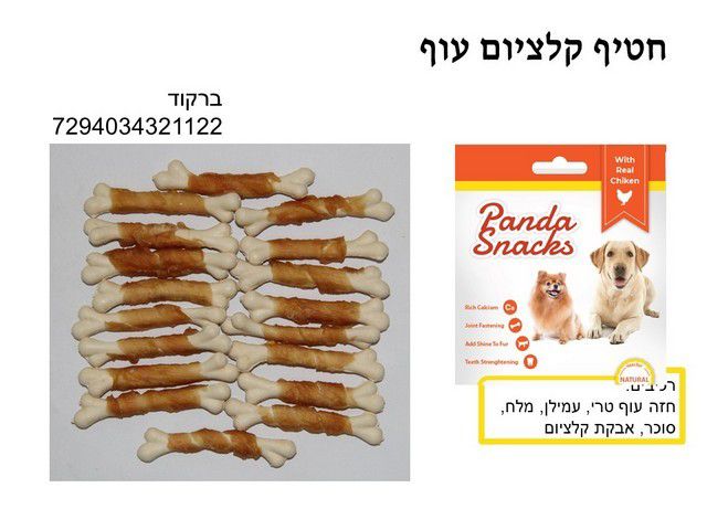 חטיפי פנדה רכים, מזינים ומפנקים. לפינוק הכלב ברמה יומיומית! מקלות קלציום עוף עם 30% חלבון | חטיפי פנדה רכים לכלבים עשויים מבשר עוף משובח, בשר מזין ומתעכל בקלות. חטיף עשיר בסידן, מועיל לשיני ומפרקי חיית מחמד. מוסיף ברק וניצוץ לפרווה