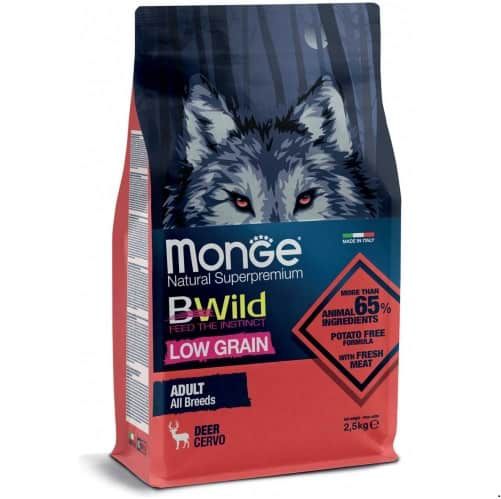 מונג' בי ויילד מזון לכלבים בוגרים מכל הגזעים צבי מופחת דגנים