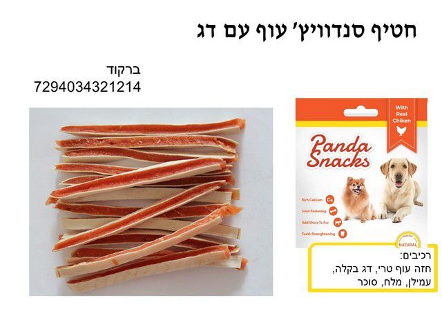חטיפי פנדה רכים, מזינים ומפנקים. לפינוק הכלב ברמה יומיומית! מקלות עוף עם 35% חלבון | חטיפי פנדה רכים לכלבים עשויים מחזה עוף טרי ודג בקלה, בשר מזין ומתעכל בקלות. חטיף עשיר בסידן, מועיל לשיני ומפרקי חיית מחמד. מוסיף ברק וניצוץ לפרווה.