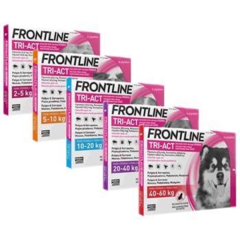 טיפות Frontline tri act זו מהדורה מתקדמת שפותחה במיוחד להדברת קרציות, פרעושים, כינים, להרחקת זבובי חול, יתושים וזבובים עוקצים אצל כלבים שגילם מעל 8 שבועות, פועל במהירות,מדביר פרעושים תוך 24 שעות וקרציות תוך 48 שעות. נשאר פעיל לאורך 1.5-2 חודשים.