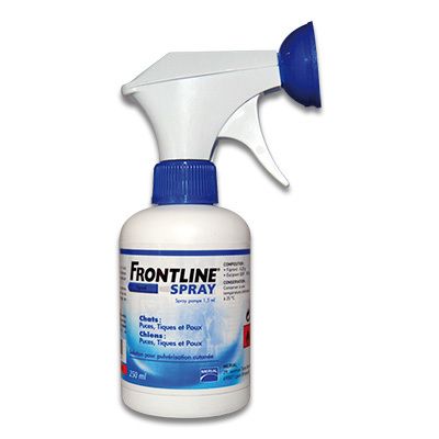 250 מ"ל Frontline spray מדביר ביעילות פרעושים וקצריות – נוסחה זהה לכלבים וחתולים – בטוח לשימוש בנקבות בהיריון או מניקות – בטוח לשימוש בגורי כלבים וחתולים מגיל יומיים – נספג ומתייבש במהירות – עמיד במים